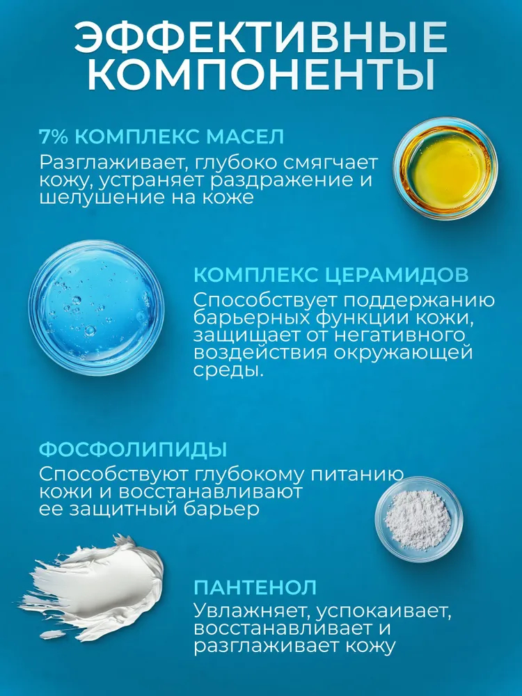 | Активные компоненты | Комплекс масел, церамиды (керамиды) |