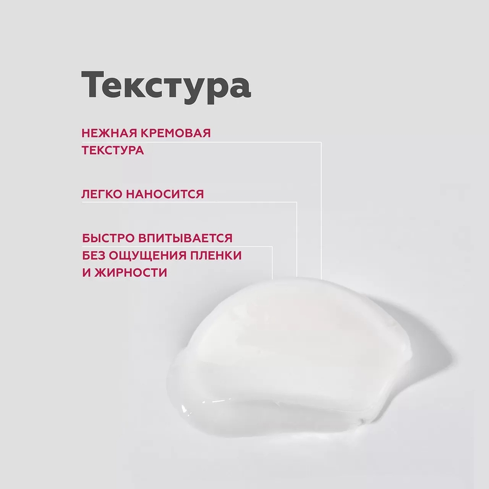 Гипоаллергенный крем, обладает приятной текстурой, комфортен в нанесении, быстро впитывается, не оставляет жирного блеска.