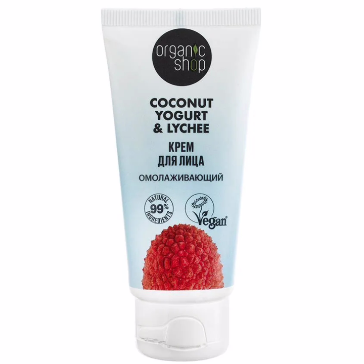 Крем для лица "Омолаживающий" Organic Shop Coconut Yogurt повышает упругость и эластичность кожи, укрепляет овал лица, выравнивает рельеф и поддерживает оптимальный уровень влаги. Формула с органическим экстрактом личи и кокосовым йогуртом защищает кожу от старения, восстанавливает защитный барьер и способствует интенсивному увлажнению.