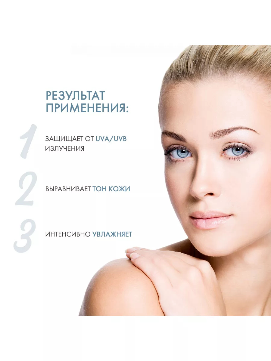 Солнцезащитный фактор широкого спектра, а также озоновый комплекс защищают кожу от вредного воздействия ультрафиолетового излучения.