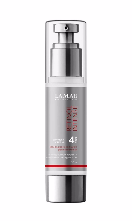 Ретинол в составе запускает интенсивное восстановление межклеточного матрикса, тем самым значительно снижая выраженность мимических морщин.