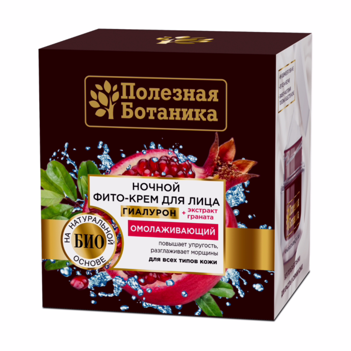Ночной фито-крем для лица "Полезная ботаника" омолаживающий для всех типов кожи – разработан на основе гиалурона и натуральных природных компонентов, что помогает ему дарить непревзойденное действие на кожу лица.