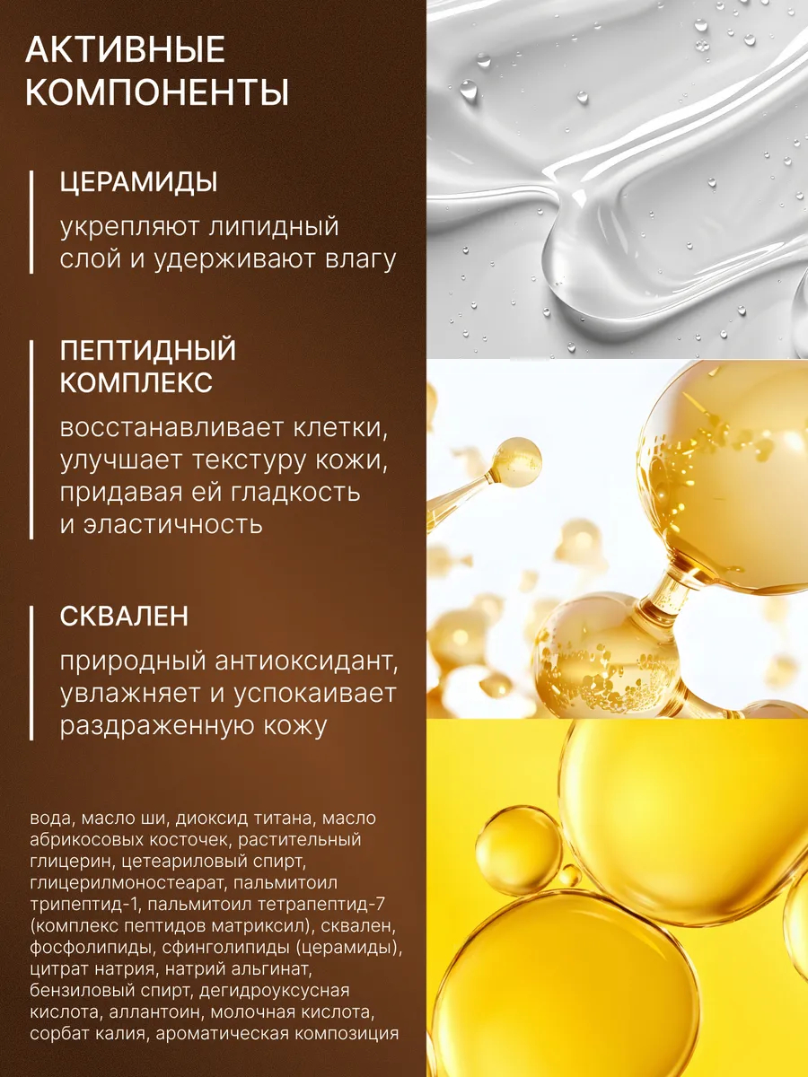 | Активные компоненты | Пептиды, церамиды (керамиды) |