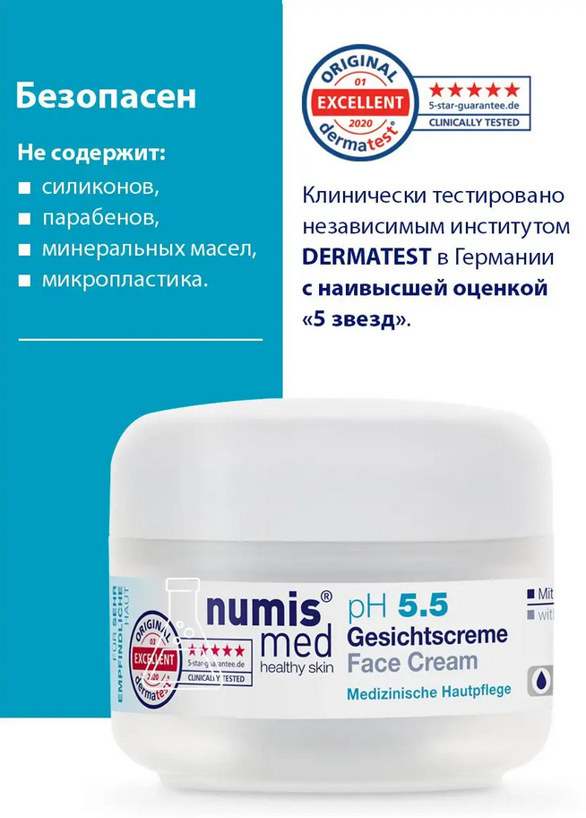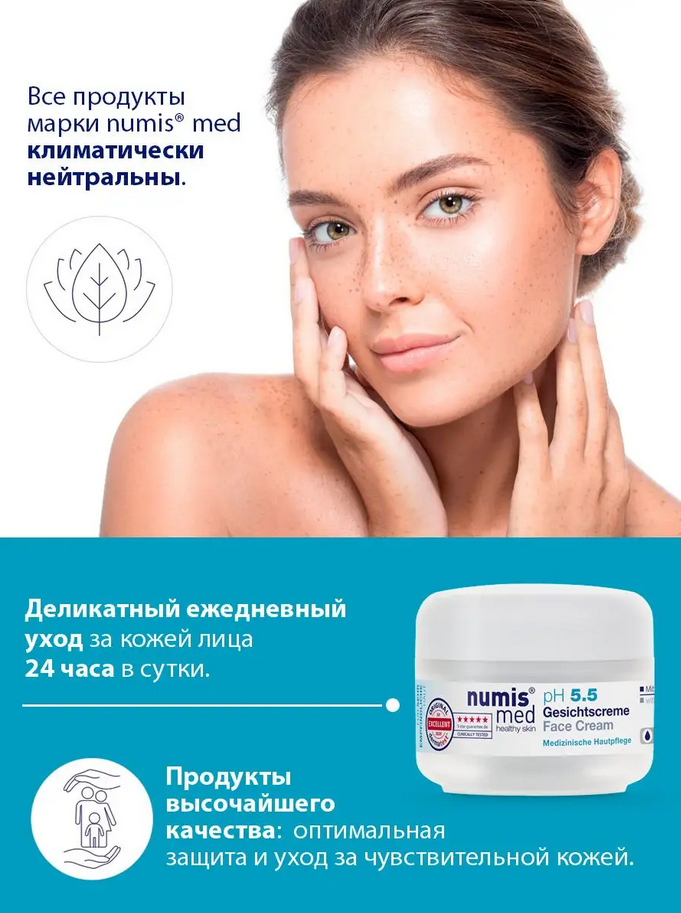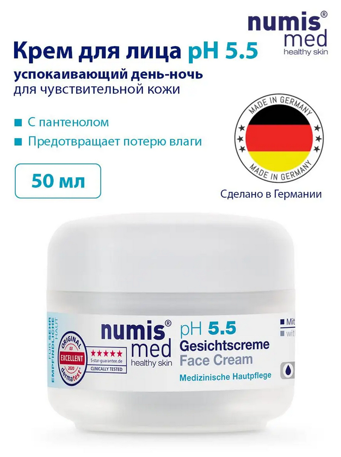 Крем для лица – это специальный восстанавливающий и успокаивающий уход за кожей лица в течение всего дня. Комфортное для кожи средство с рН 5,5 – крем легкой текстуры, который обеспечивает коже естественную защиту и предохраняет ее от потери влаги. Быстро впитывается, не оставляя липкой пленки.