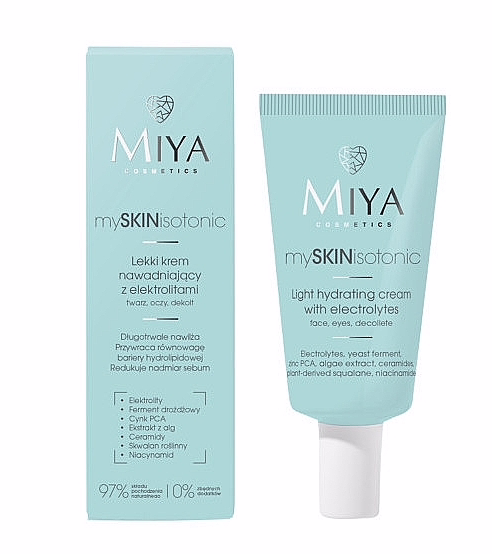 Легкий увлажняющий крем для лица с электролитами mySKINisotonic подходит для ухода за чувствительной, комбинированной, жирной и склонной к акне кожей.