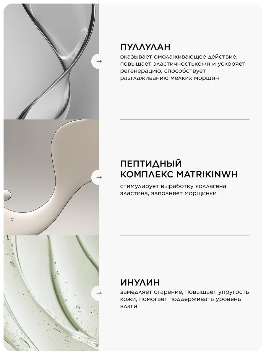 | Эффект | Антивозрастной уход, лифтинг, омолаживающий, питание, против морщин, увлажнение |
