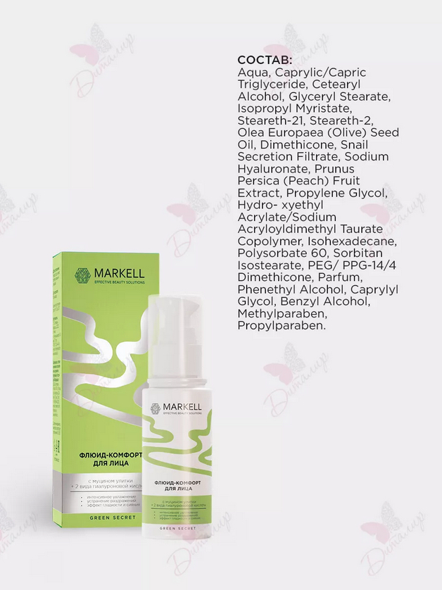 | Активные компоненты | Гиалуроновая кислота, муцин улитки |