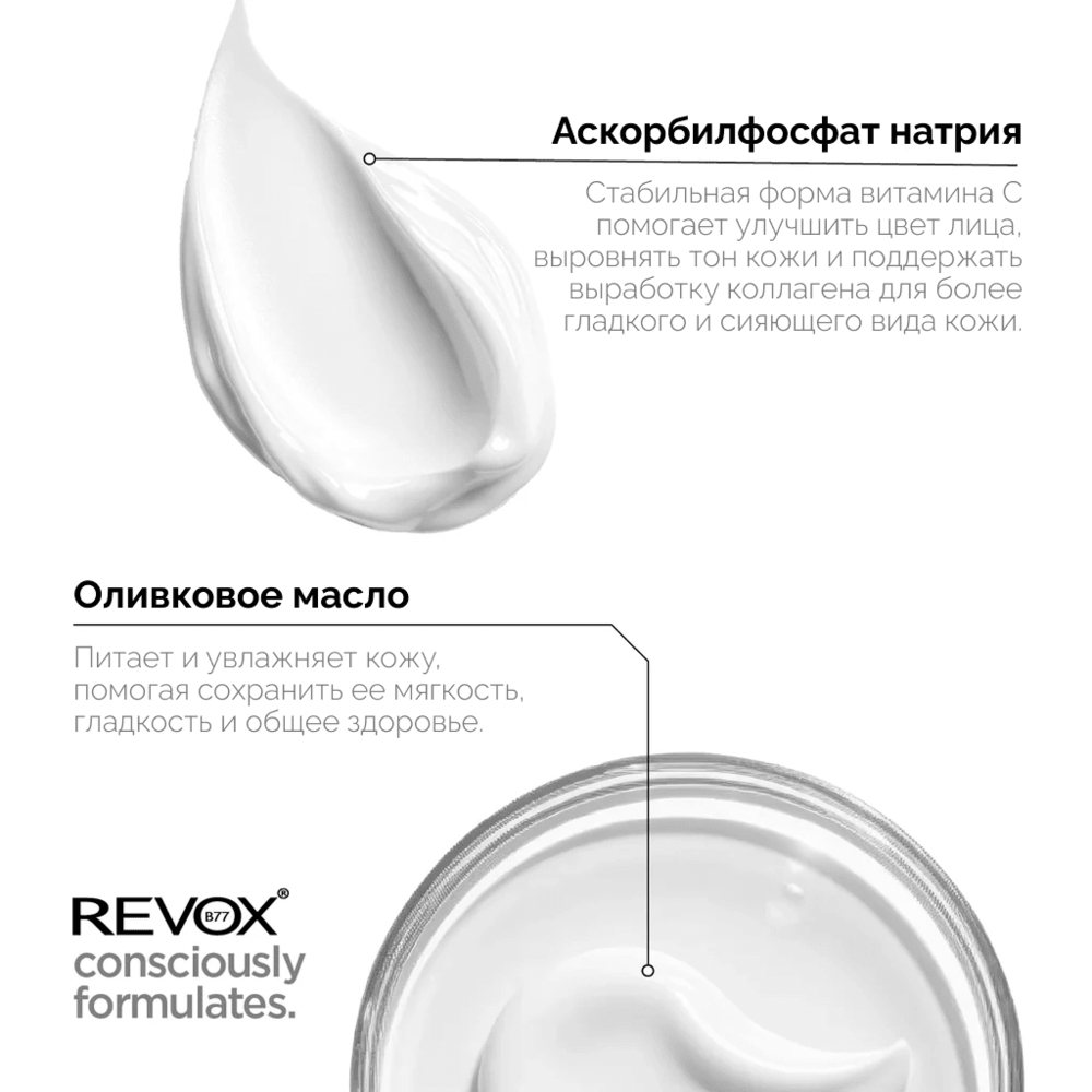 Это средство борется с неровным цветом лица, сухостью и признаками старения. Оно особенно полезно для уставшей и тусклой кожи. Используйте в сочетании с REVOX B77 JUST Marine Collagen + HA для усиления антивозрастного эффекта.