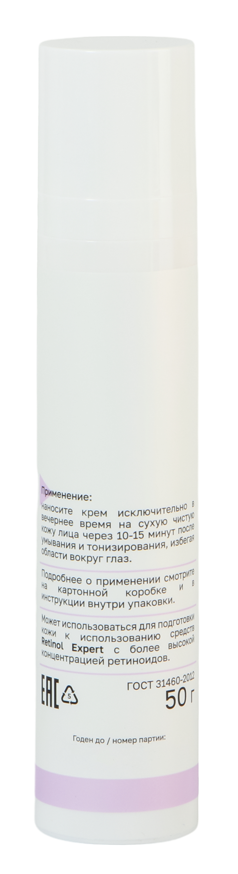 Наносите крем исключительно в вечернее время на сухую чистую кожу лица через 10-15 минут после умывания и тонизирования, избегая области вокруг глаз. В первое время использования может наблюдаться сухость и легкое шелушение, повышение чувствительности, обусловленные активным обновлением кожи. В течение 2-3 недель по мере адаптации кожи эта реакция проходит. Не подвергать кожу воздействию УФ-излучения. Днем обязательно использовать средства с SPF≥25. Не использовать с другими средствами, содержащими ретинол. Для максимального эффекта применяйте средства линии Retinol Expert в комплексе не менее трех месяцев. Может использоваться для подготовки кожи к использованию средств RETINOL EXPERT с более высокой концентрацией ретиноидов.Состав