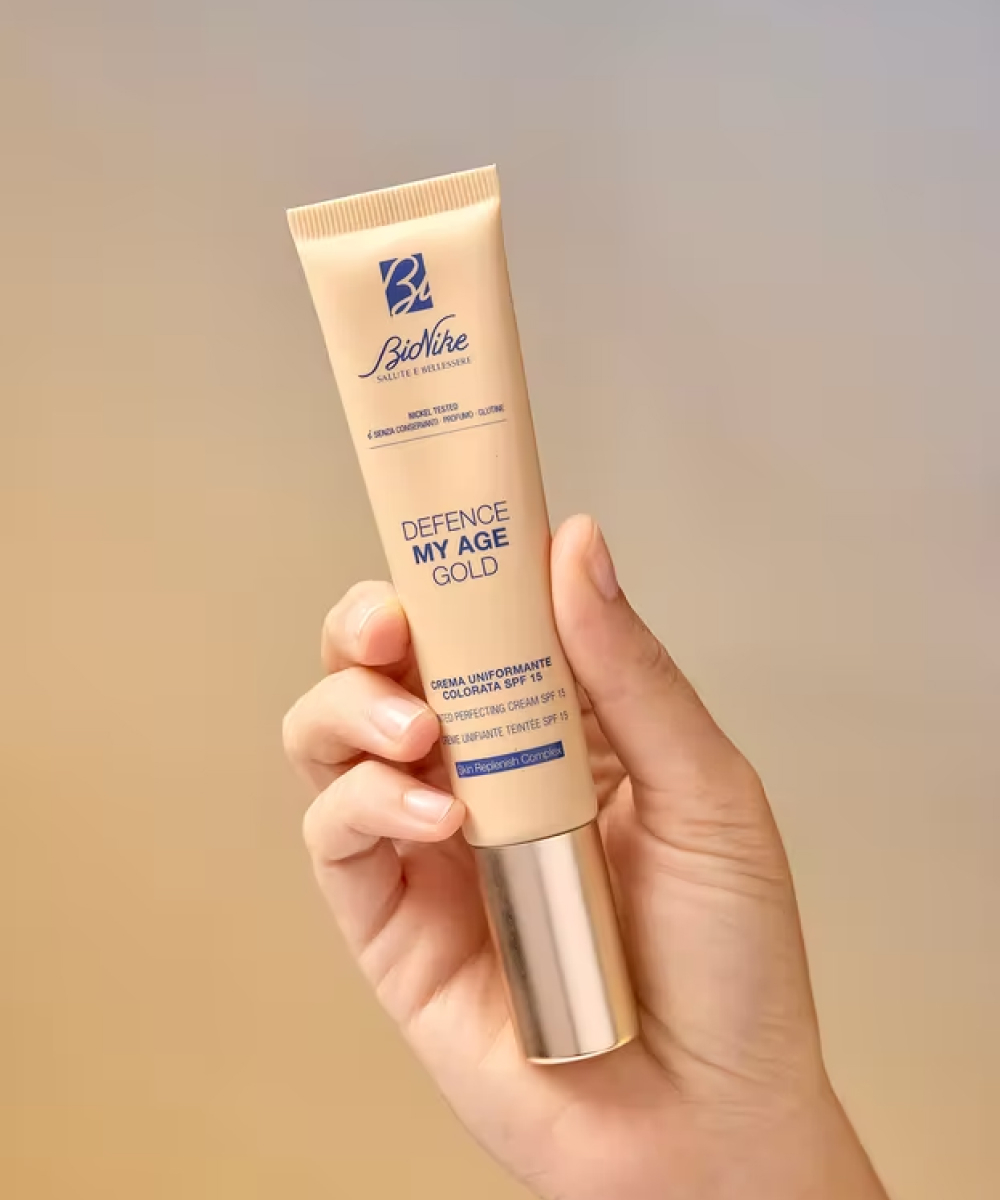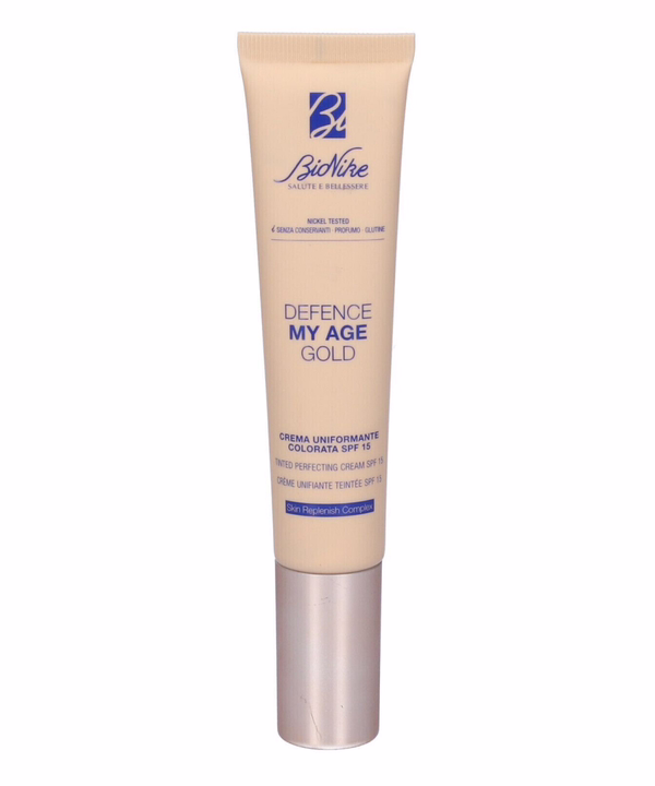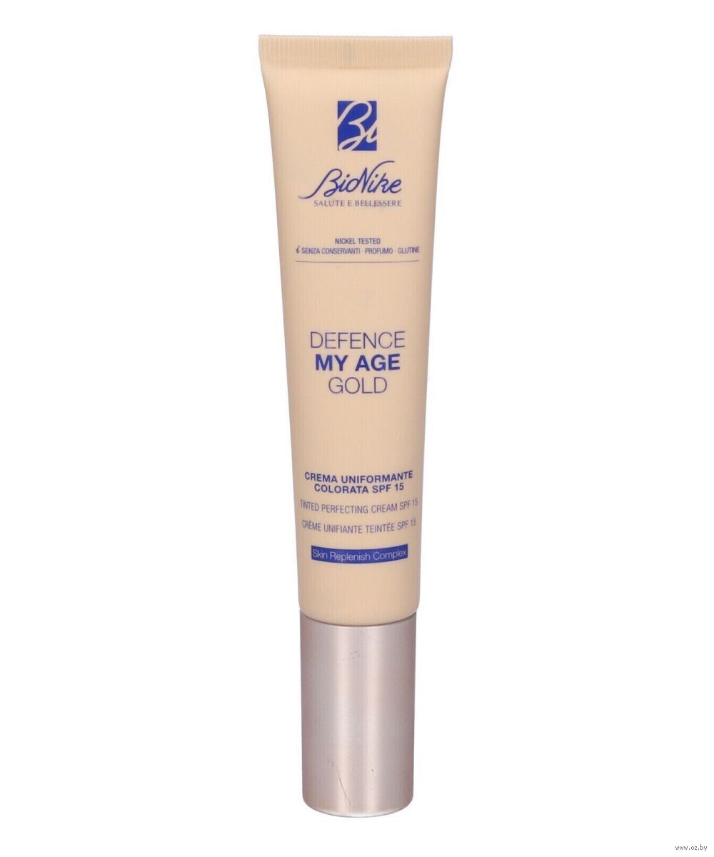BioNike "Defence My Age Gold Tinted Perfecting Cream" SPF 15 представляет собой высокотехнологичное средство, объединяющее декоративные свойства с доказанным клиническим уходом.