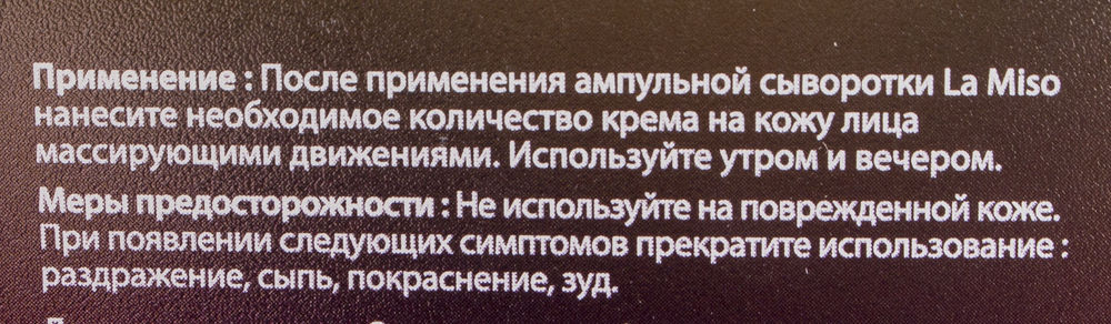 Ампульный крем от "La Miso" интенсивно ухаживает за кожей лица, не оставляет следов от морщинок и создает защитный барьер против негативных факторов окружающей среды.