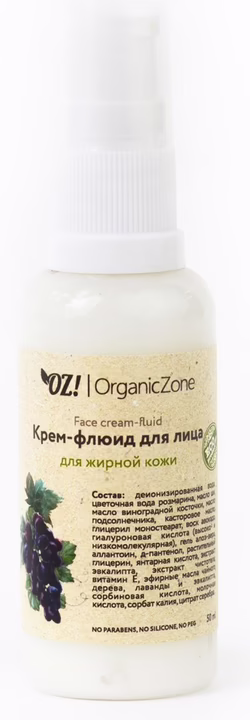 100% натуральный крем-флюид для жирной и комбинированной кожи лица уменьшает жирность, придает коже матовость и шелковистость, помогает в борьбе с воспалениями.
