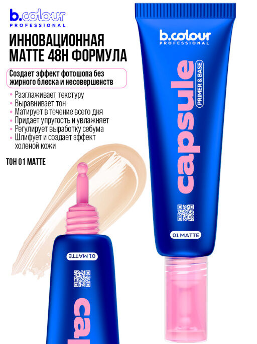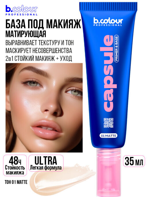 База под макияж с матирующим эффектом выравнивает и разглаживает текстуру кожи, контролирует жирный блеск и сокращает видимость пор, подготавливая кожу к нанесению макияжа. Тональный крем, консилер и тени для век ложатся идеально ровно и стойко держатся до 48 часов.