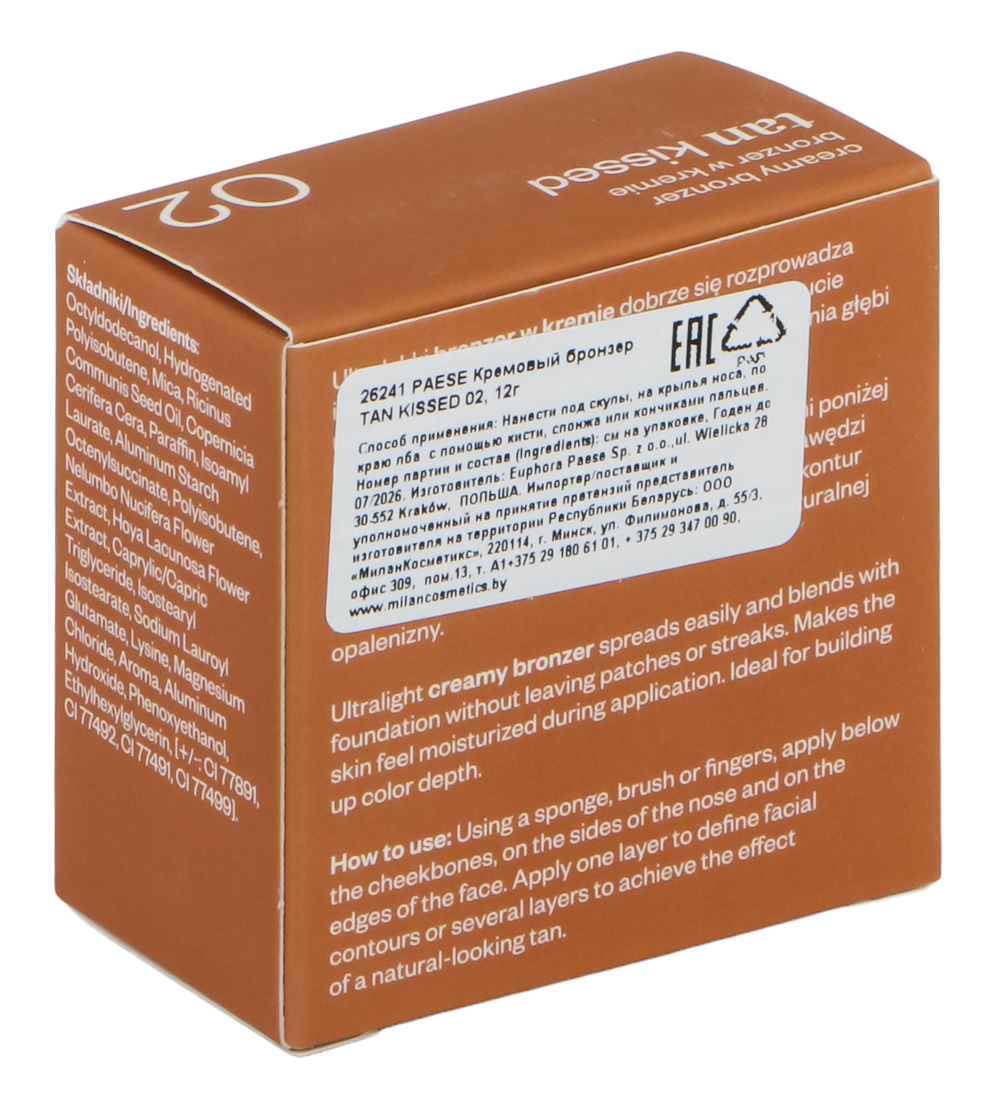| Импортер | ООО МиланКосметикс, 220114, Республика Беларусь, г. Минск, ул. Филимонова, дом № 55, корпус 3, офис 309, помещение 13 |