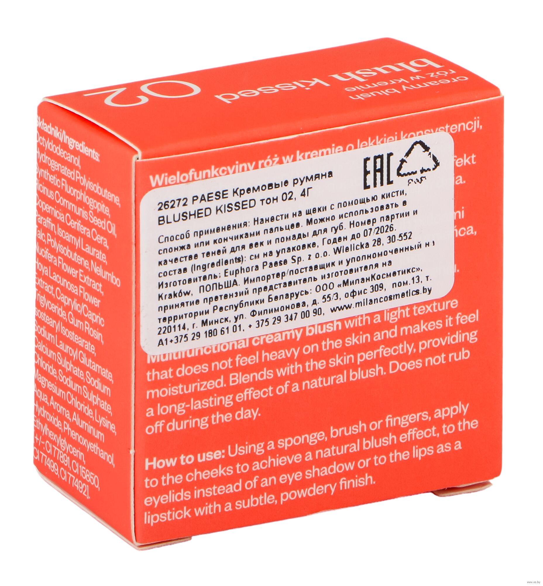 | Импортер | ООО МиланКосметикс, 220114, Республика Беларусь, г. Минск, ул. Филимонова, дом № 55, корпус 3, офис 309, помещение 13 |