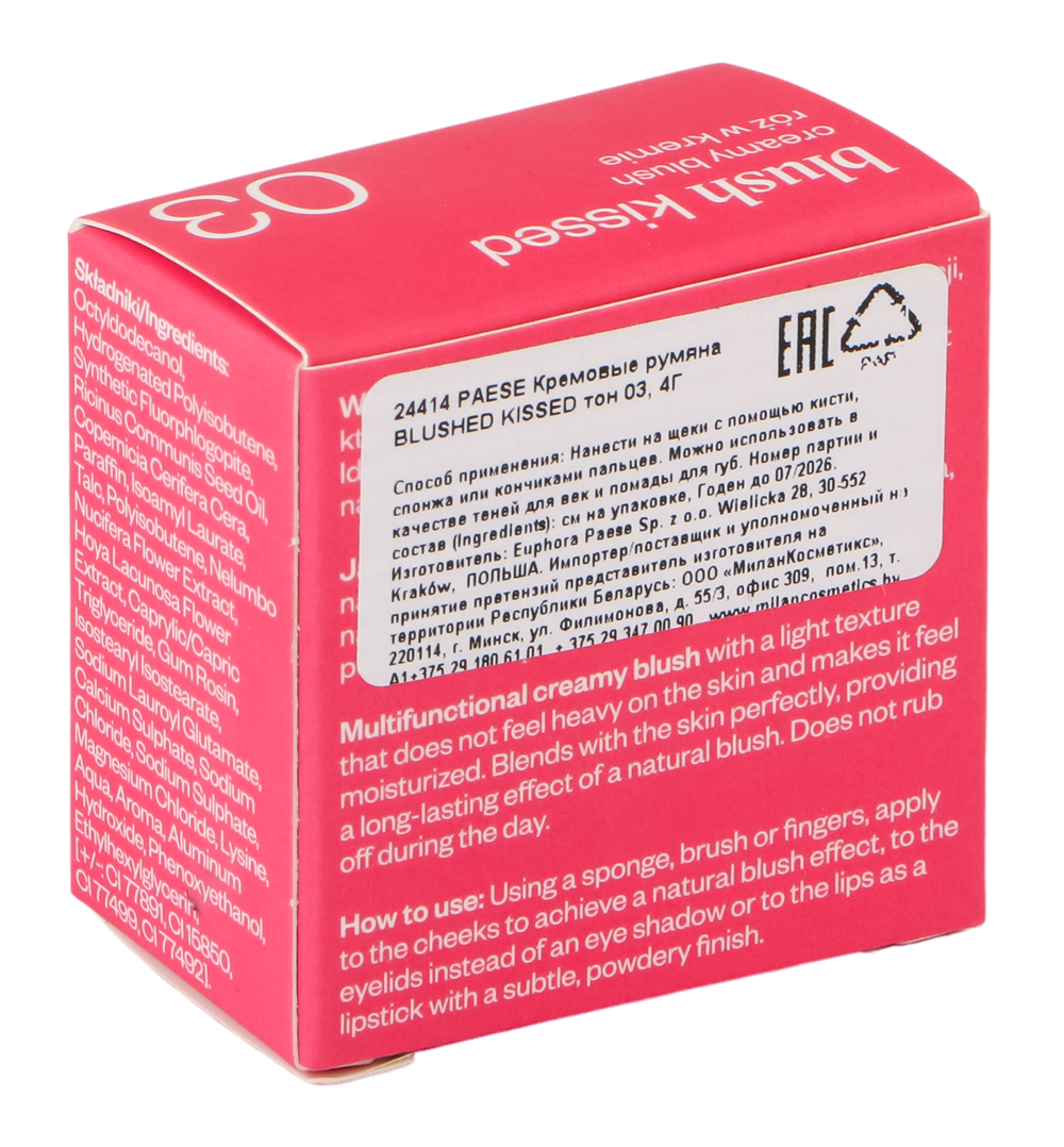 | Импортер | ООО МиланКосметикс, 220114, Республика Беларусь, г. Минск, ул. Филимонова, дом № 55, корпус 3, офис 309, помещение 13 |
