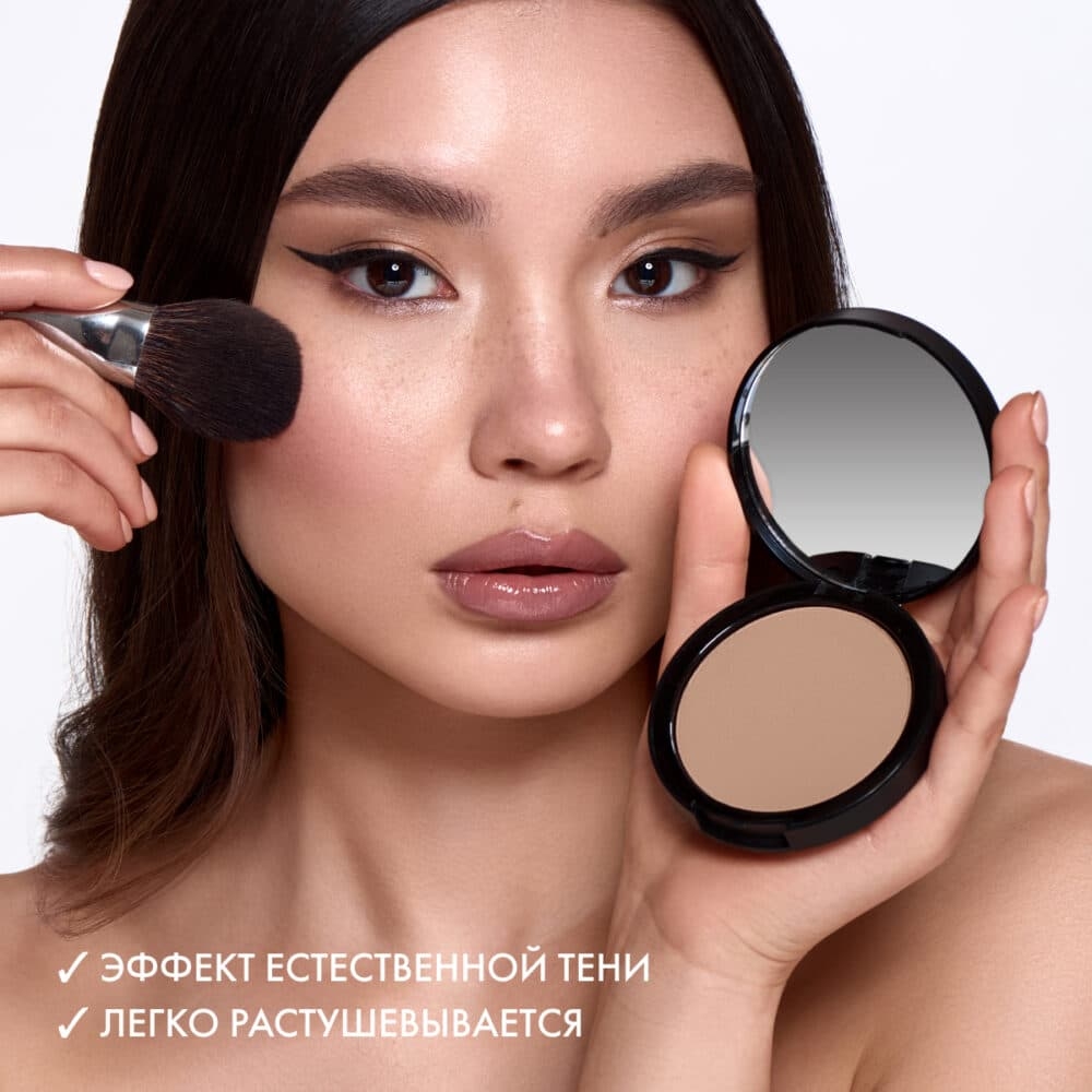 Нанесите небольшой пушистой кистью, чтобы подчеркнуть контур лица. Акцентируйте скульптором впадины под скуловой частью лица, нос и зону роста волос.Состав