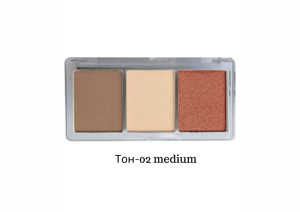 Палетка для скульптурирования лица 3 в 1. Контуринг + хайлайтер + румяна. Создаёт идеальную форму лица в 3 простых шага!