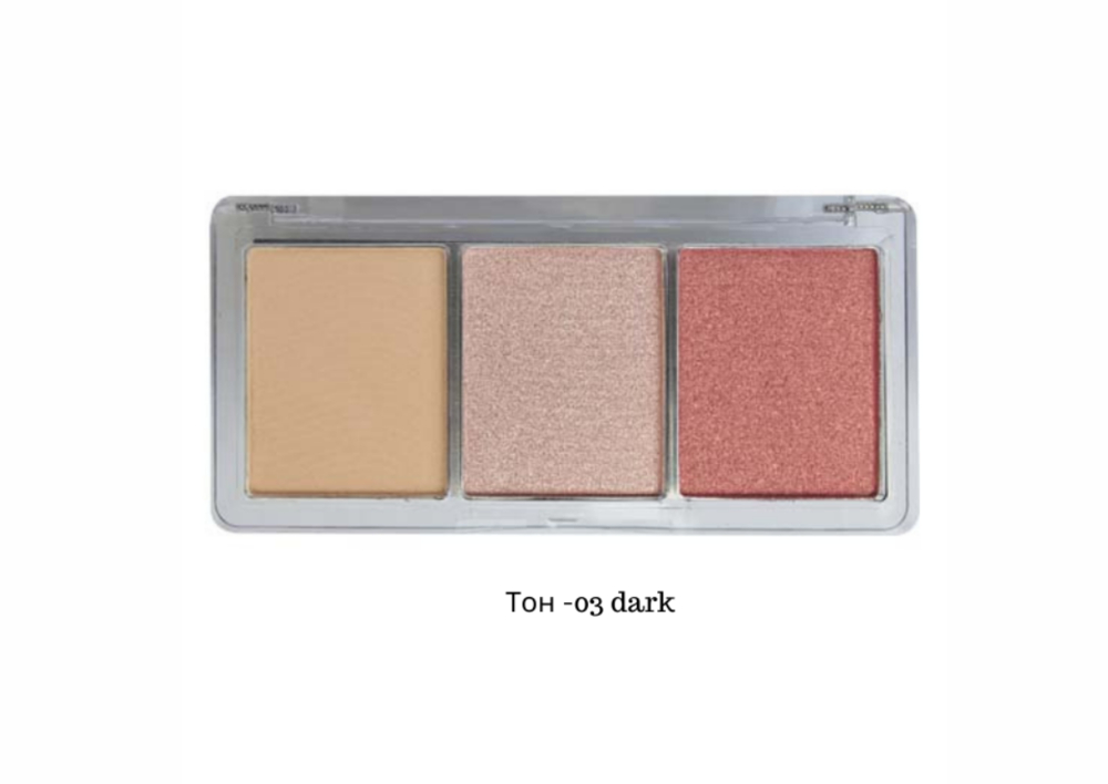 Палетка для скульптурирования лица 3 в 1. Контуринг + хайлайтер + румяна. Создаёт идеальную форму лица в 3 простых шага!