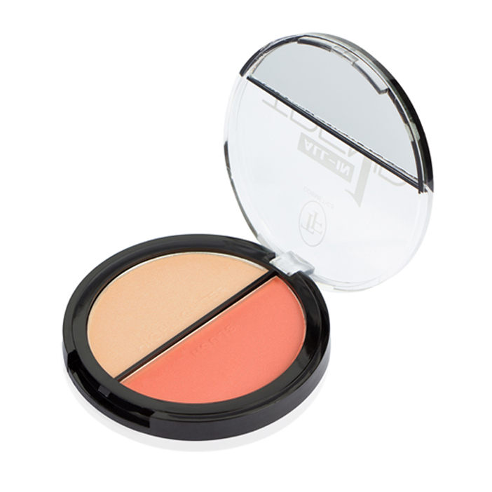 Компактное и удобное средство 2 в 1 румяна для скульптурирования лица и хайлайтер для придания сияния.