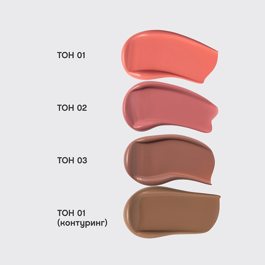 В палитре есть три оттенка румян и один универсальный оттенок контуринга, который подойдет каждой.