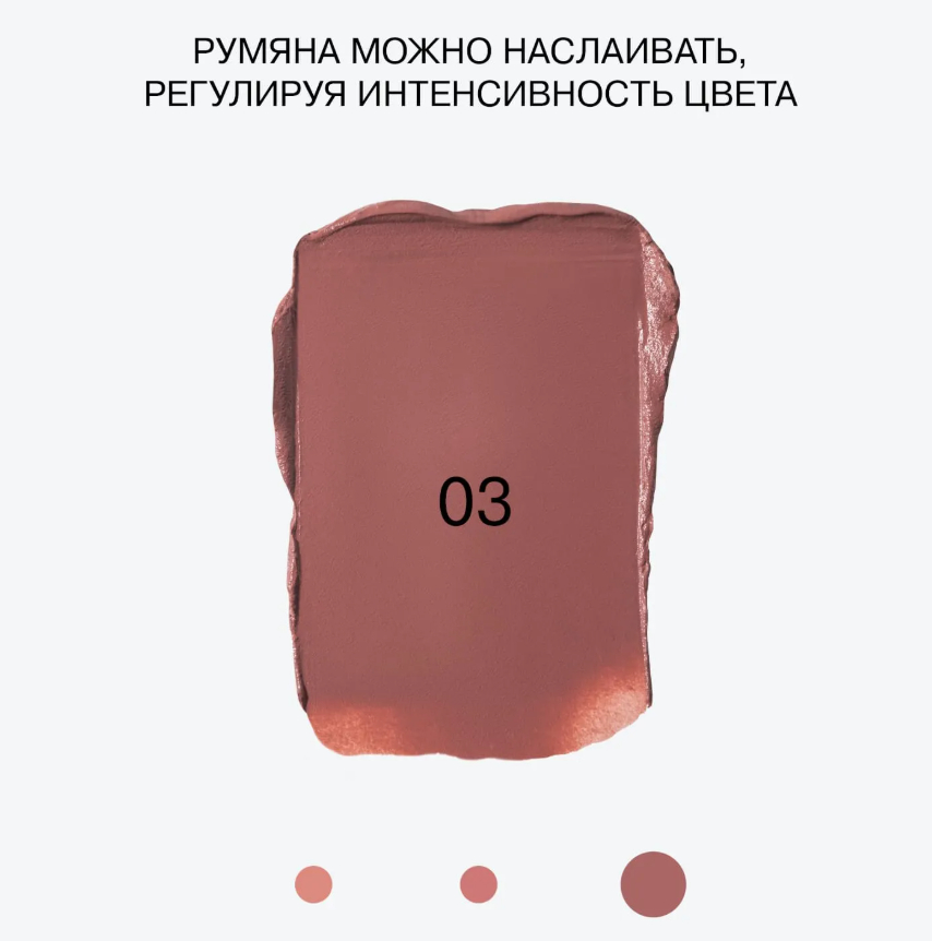 Высокопигментированная формула гарантирует насыщенность оттенков, которые сохраняют свою яркость в течение дня. Благодаря витамину Е в составе румяна не сушат кожу и улучшают ее рельеф. Они подходят для всех типов кожи и представлены в трех универсальных оттенках для любого образа.