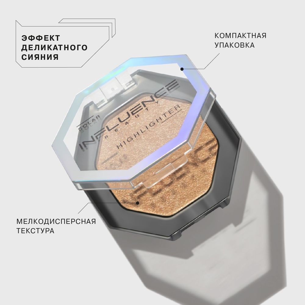 Чтобы выделить и подчеркнуть определенные зоны лица, наносите хайлайтер кистью или пальцами на его выступающие участки, так как именно на них в первую очередь падает свет. Для более интенсивного сияющего эффекта наносите хайлайтер на влажную кожу.Состав
