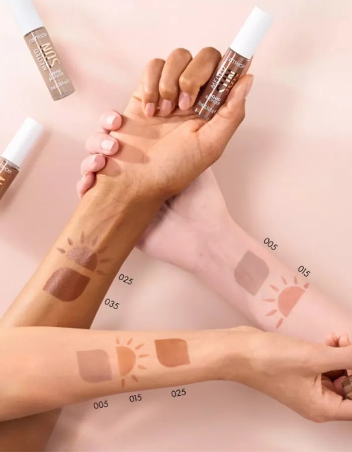 Придайте своей коже эффект солнечного загара с помощью жидкого бронзера Melted Sun Liquid Bronzer 015 Sunkissed от Catrice потрясающего теплого карамельно-коричневого оттенка. Мягкая кремовая текстура с хорошо наслаиваемым покрытием легко растушевывается и приятно тает на коже, образуя естественное матовое покрытие и позволяя вам создавать индивидуальный загорелый образ – от легкого оттенка до эффектного загара.