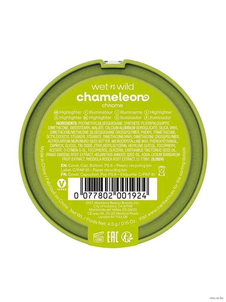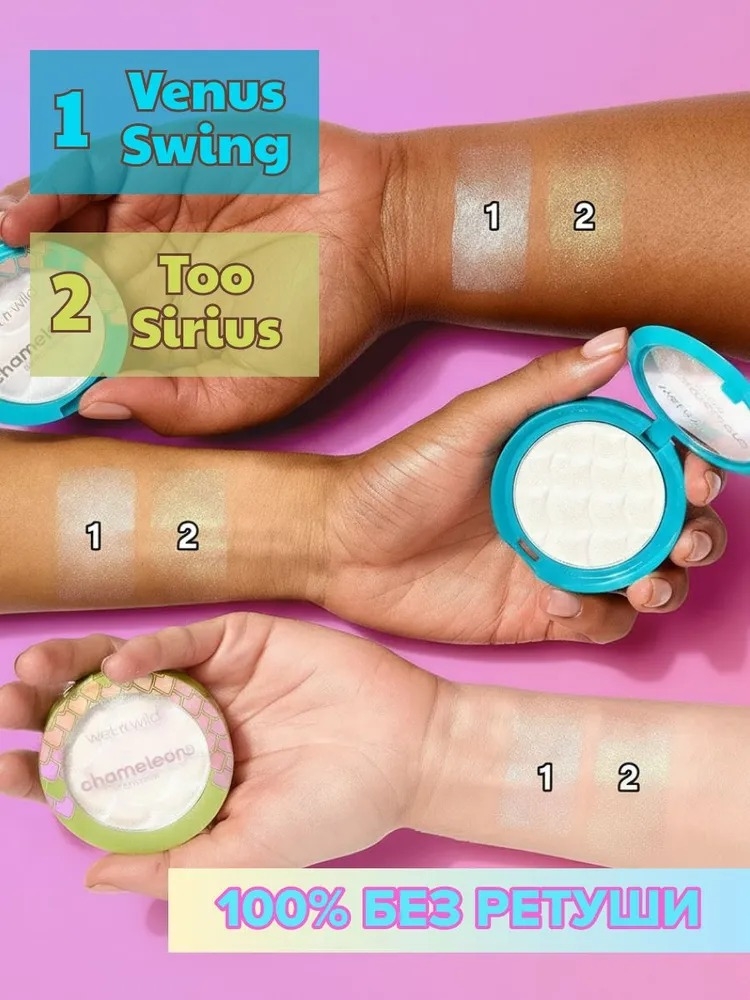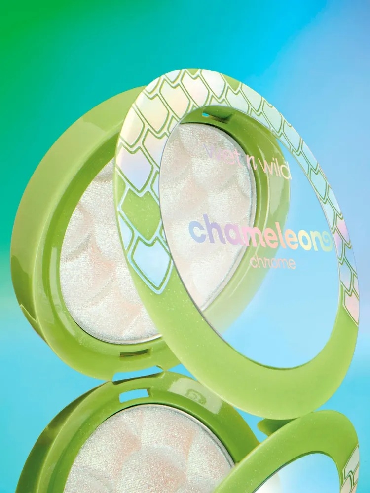 Приготовьтесь к хайлайтеру, который так же уникален, как и вы – Chameleon Chrome Highlighter! Революционные светореактивные пигменты меняют оттенок и мерцают при попадании света, трансформируя ваш образ под любым углом.
