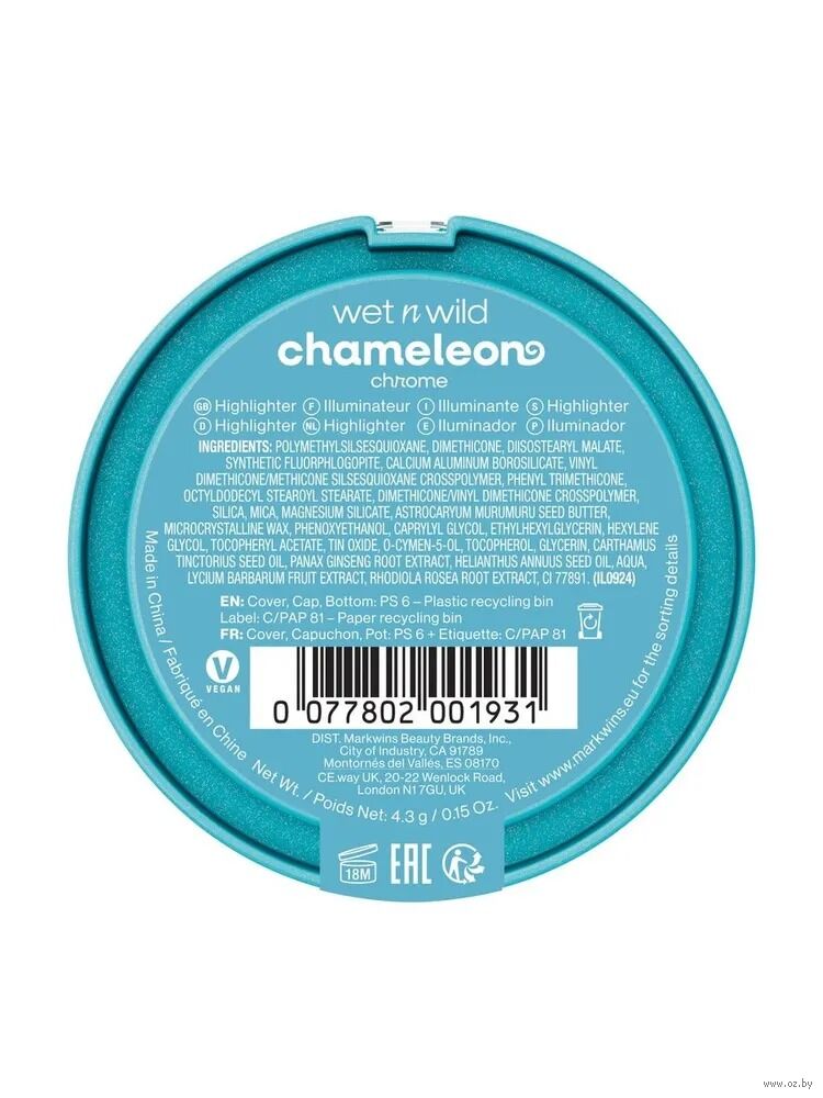 Приготовьтесь к хайлайтеру, который так же уникален, как и вы – Chameleon Chrome Highlighter! Революционные светореактивные пигменты меняют оттенок и мерцают при попадании света, трансформируя ваш образ под любым углом.