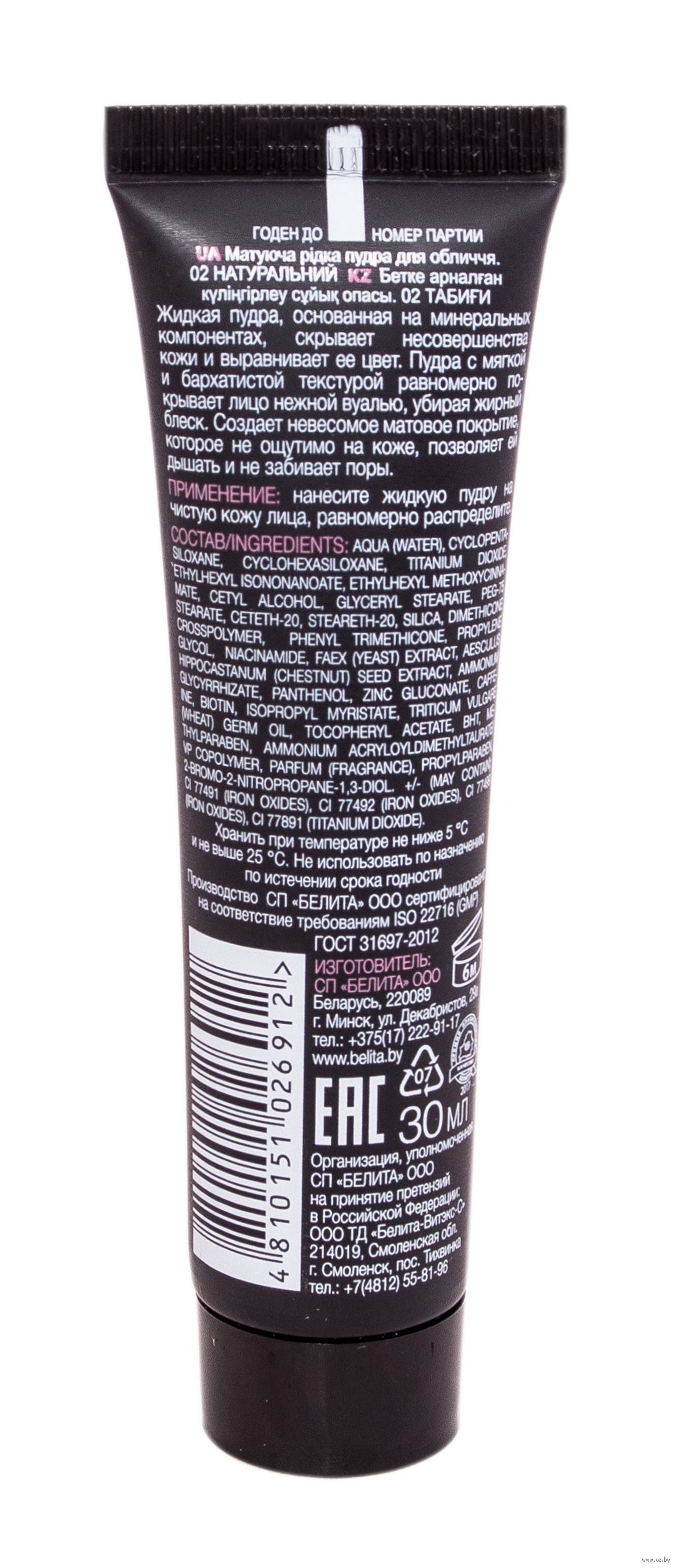 Жидкая пудра для лица "Lab colour", основанная на натуральных минералах, скрывает несовершенства кожи и выравнивает ее цвет. Пудра с мягкой и бархатистой текстурой равномерно покрывает лицо нежной вуалью, убирая жирный блеск. Создает невесомое матовое покрытие, которое не ощутимо на коже, позволяет ей дышать и не забивает поры.