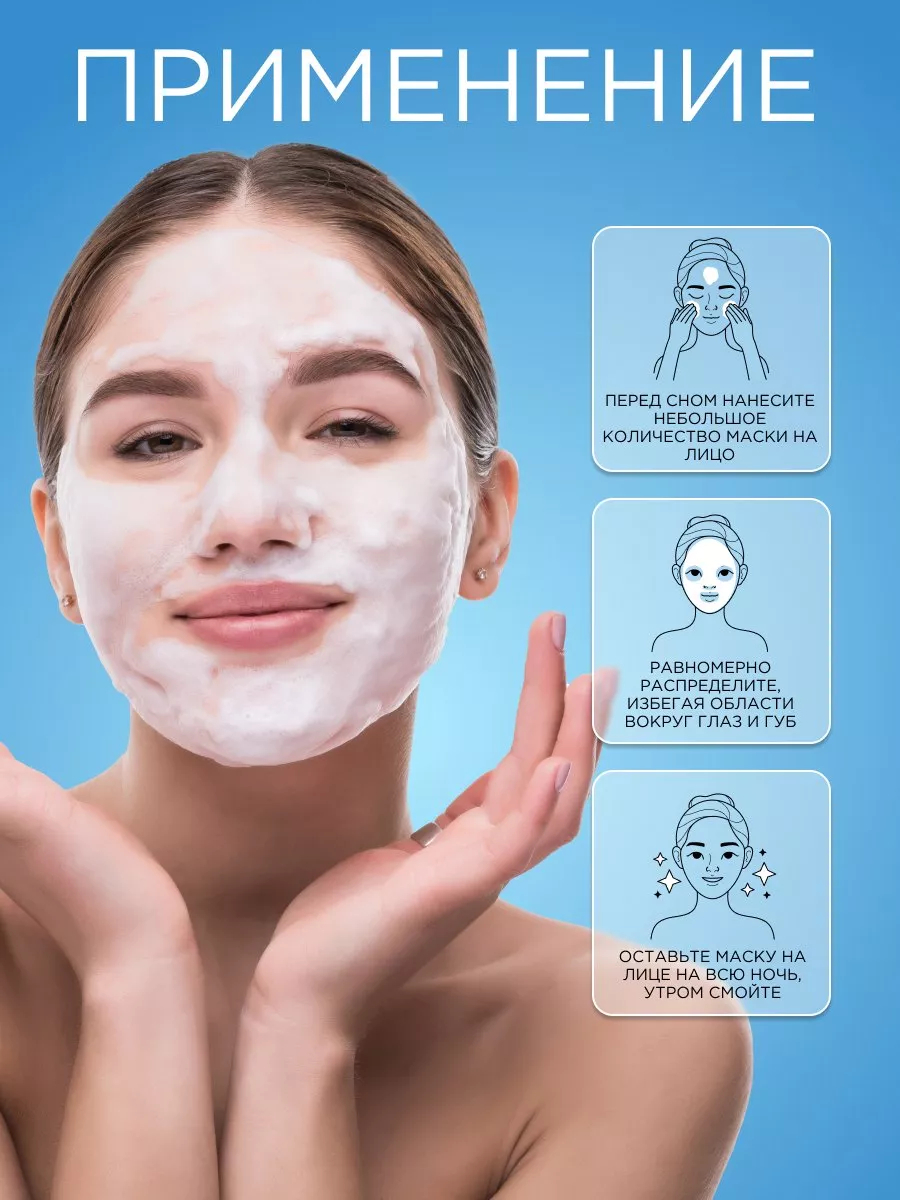 После очищения и тонизирования кожи лица, вместо крема нанести необходимое количество маски в качестве завершающего этапа вечернего ухода перед сном.Состав