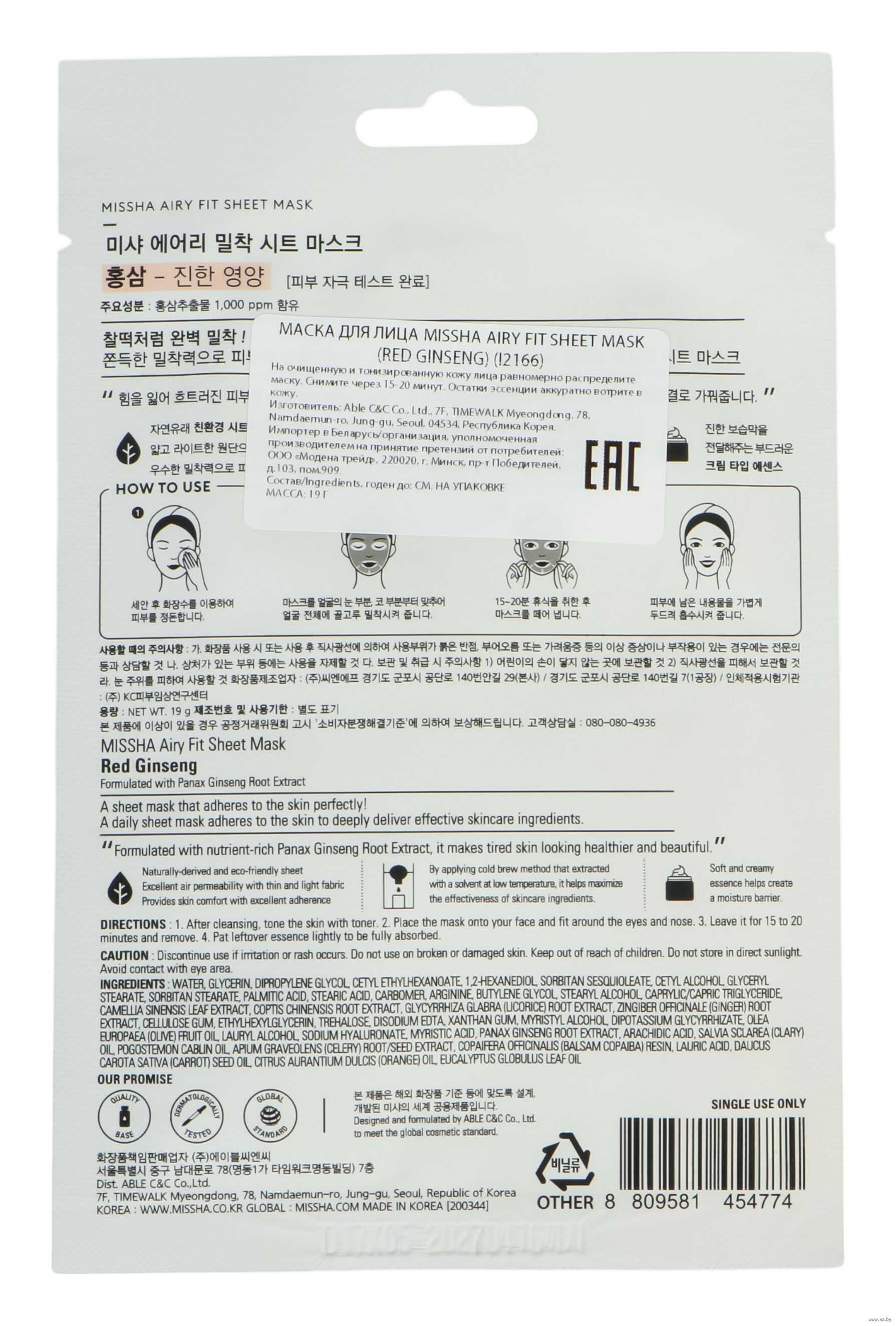 Тканевая маска для лица "Red Ginseng" (19 г)