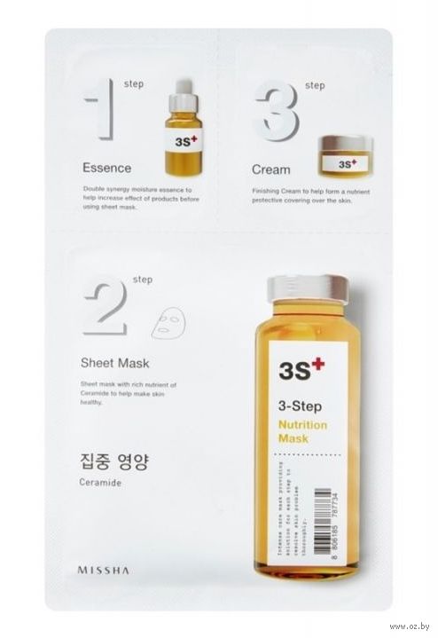 В одной упаковке вы найдете эссенцию, маску и крем для лица. Следует использовать если у вас сухая, шелушащаяся или тусклая кожа.