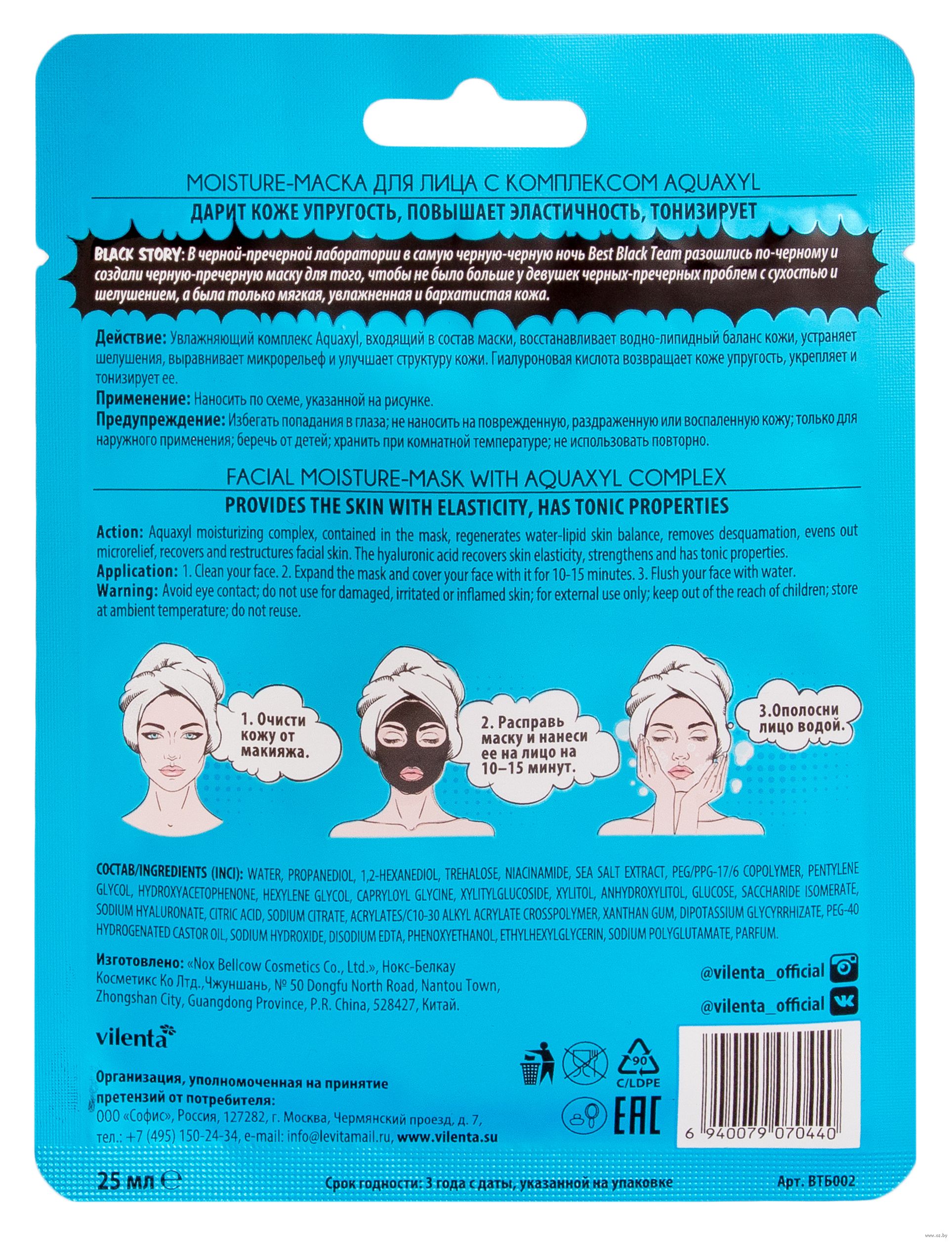 Тканевая маска для лица "Total Black Aquaxyl" (28 мл)