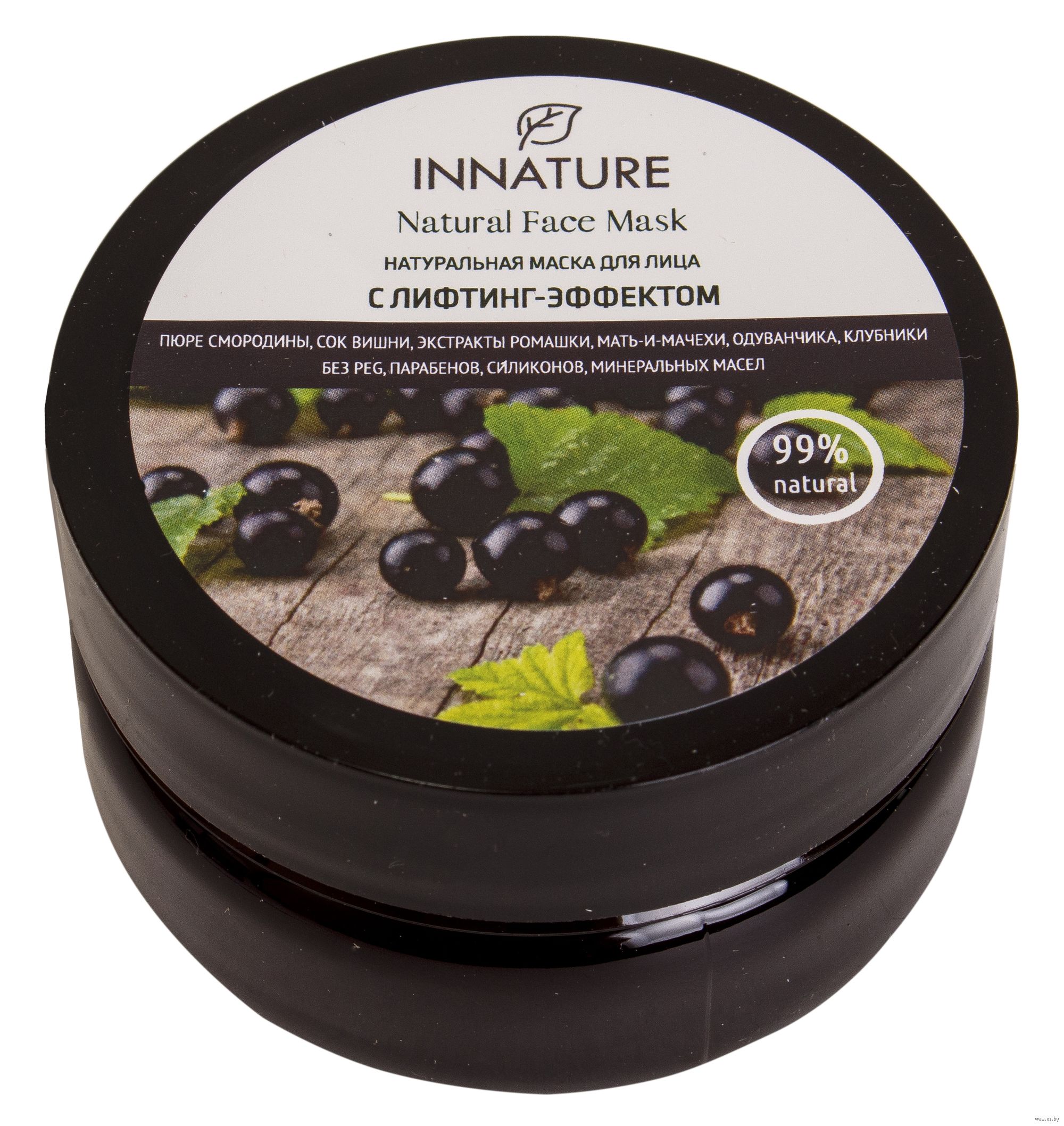 Deionized water with infusion of Ribes Nigrum (Blackcurrant) Extract (экстракт смородины), Matricaria Chamomilla (Chamomile) Extract (экстракт ромашки), Tussilago Farfara (Foalfoot) Extract (экстракт мать-и-мачехи), Taraxacum Officinale (Dandelion) Extract (экстракт одуванчика), Fragaria Moschata (Strawberry) Extract (экстракт клубники), Prunus Сerasus (Cherry) Juice (сок вишни), Ribes Nigrum (Blackcurrant) Puree (пюре черной смородины), Macadamia Оil (масло макадамии), Argania Spinosa Oil (масло арганы), Blackcurrant Оil (масло черной смородины), Butyrospermum Parkii (Shea) Butter (масло ши), Cetearyl Glucoside, Neem Seed Wax (воск дерева ним), Glyceryl Oleate, Sodium Stearoyl, Glutamate, Caprylyl–Caprylate/Caprate, Kaolin, Allantoin, Vegetable Glycerin, Glycolic Acid (гликолевая кислота), Lactic Acid (молочная кислота), Succinic Acid (янтарная кислота), D-panthenol (провитамин В5), Gel Aloe Vera (гель алоэ-вера), Phytosqualane, Xanthan Gum, Hyaluronic Acid (гиалуроновая кислота), Sodium PCA, Tocopherol (витамин Е), Benzyl Alcohol, Benzoic Acid, Potassium Sorbat, Parfum.