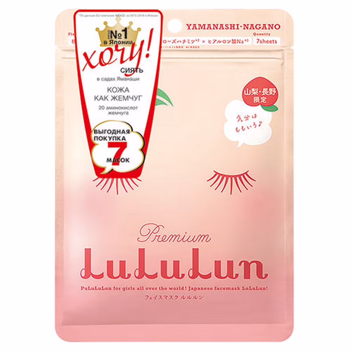Набор японских тканевых масок с натуральными ингредиентами префектуры Яманаси, жемчужным протеином и низкомолекулярной гиалуроновой кислотой.