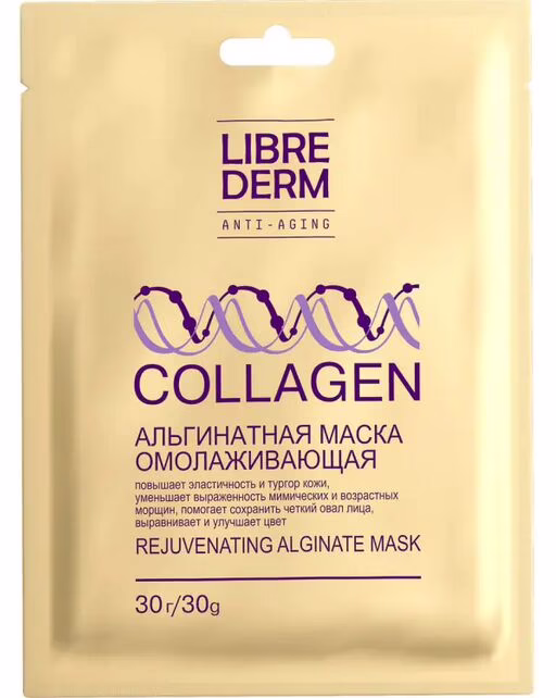 Восстанавливается водный баланс, сужаются поры, повышается тургор и эластичность кожи. Активные компоненты Librederm Anti-Aging Line Collagen Rejuvenating Alginate Mask оказывают детоксицирующий эффект, дарят коже сияние, насыщают её витаминами и минеральными элементами. Кожа выглядит моложе, овал лица восстанавливается, уходит отёчность и тусклый цвет лица.