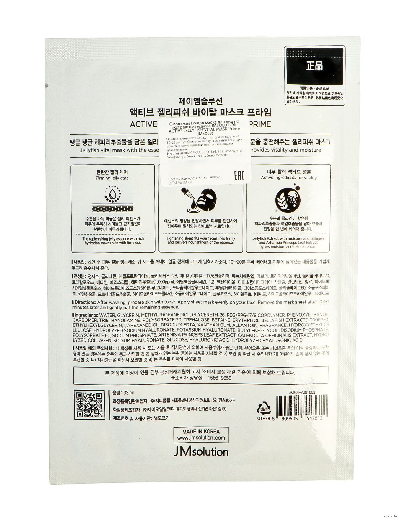Тканевая маска для лица "Active Jellyfish Vital Mask" (30 мл)