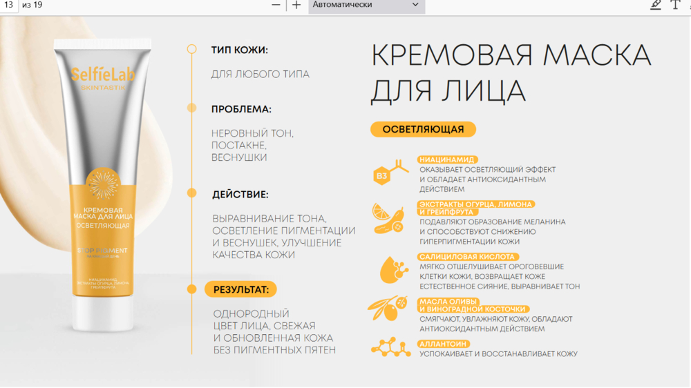 | Эффект | Выравнивание тона, осветление, против пигментации |