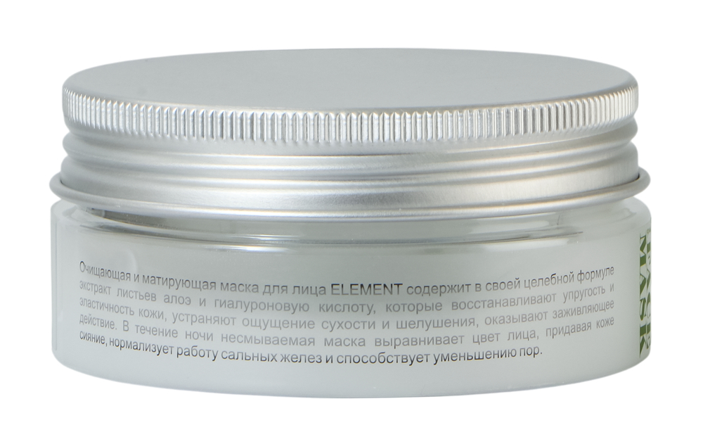 Используйте в качестве завершающего этапа вечернего ухода за кожей. Нанесите маску ELEMENT массирующими движениями на лицо и шею. Оставьте на ночь, а затем смойте утром, чтобы кожа была увлажненной и напитанной. Рекомендуем использовать каждый день для достижения наилучшего эффекта.Состав