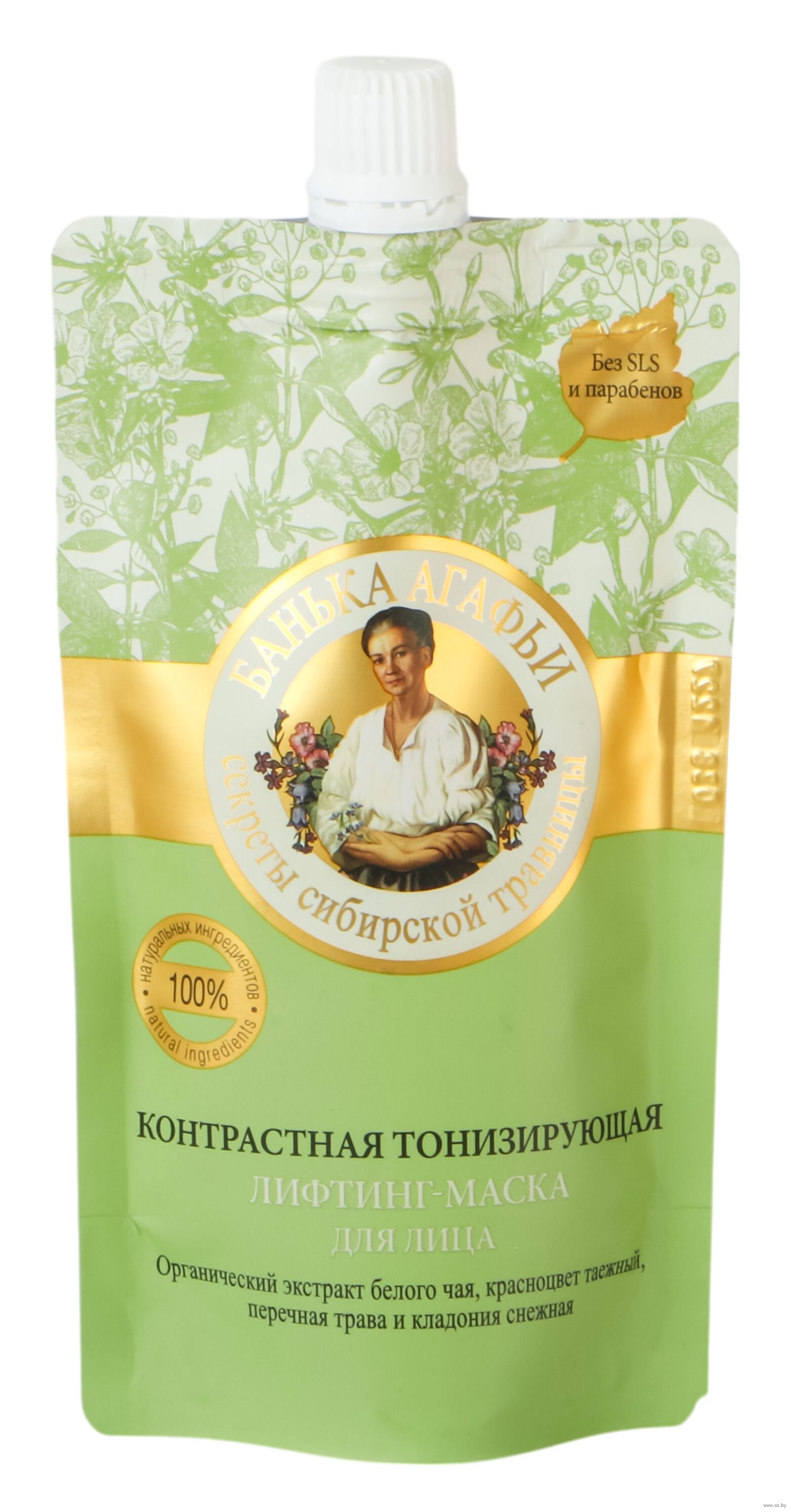 Ингредиенты, входящие в состав средства: красноцвет таёжный является источником витаминов групп А и С, прекрасно питает и увлажняет. Нежный органический экстракт белого чая в компании с перечной травой подтягивает и тонизирует. Омолаживающее масло ростков пшеницы обеспечивает смягчение, а кладония снежная содержит уникальную усниновую кислоту, способствующую активному обновлению клеток кожи.