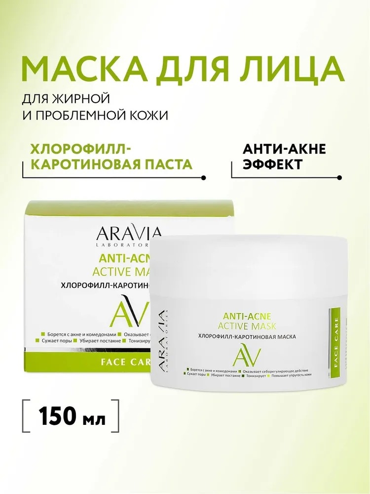 Маска для лица "Хлорофилл-каротиновая. Anti-Acne Active Mask" (150 мл)