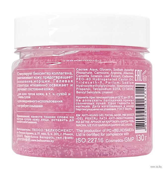 Стимулирует биосинтез коллагена, разглаживает кожу, предотвращает появление морщин. Гелевая структура мгновенно освежает и улучшает состояние кожи.