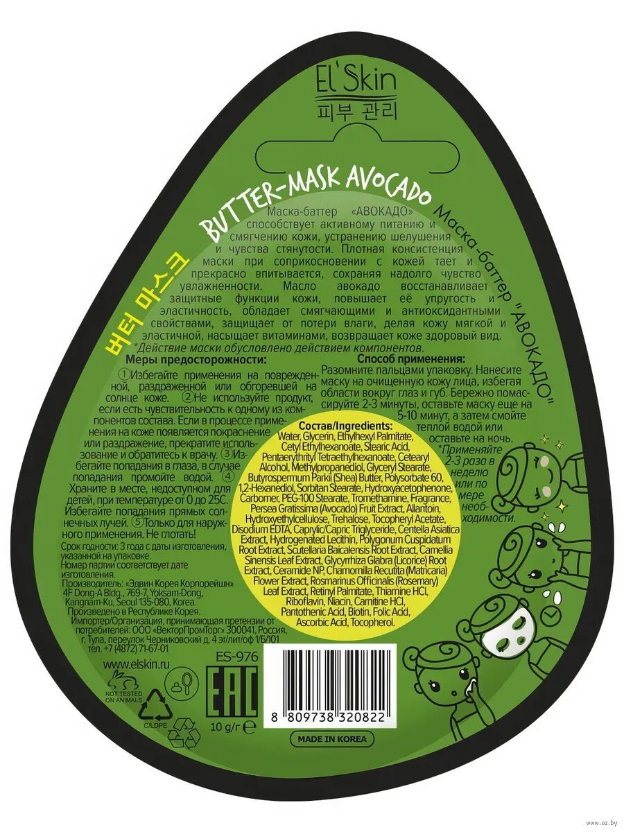 Маска-баттер для лица "Авокадо" питает и смягчает кожу, устраняет шелушение и чувства стянутости.