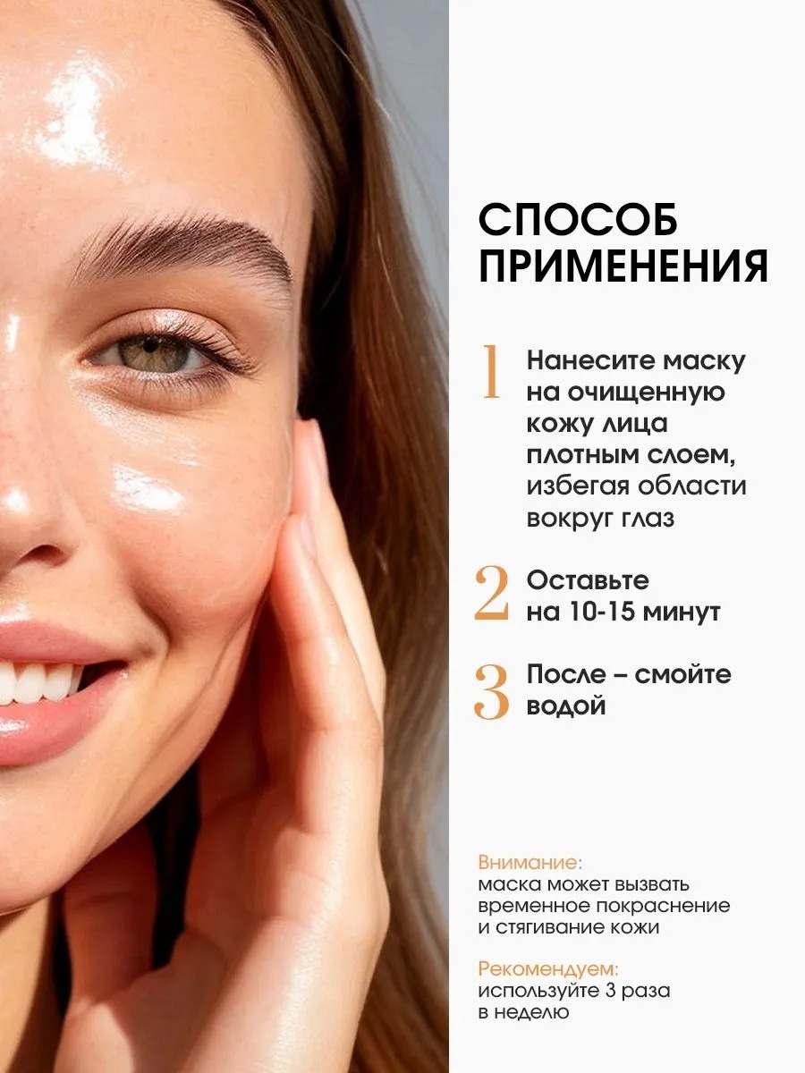 Нанесите маску на очищенную кожу лица тонким слоем, избегая области вокруг глаз. Оставьте на 10–15 минут, после смойте водой. Возможно незначительное пощипывание. Если пощипывание усиливается, смойте маску. Рекомендуем использовать 1-2 раза в неделю.Состав