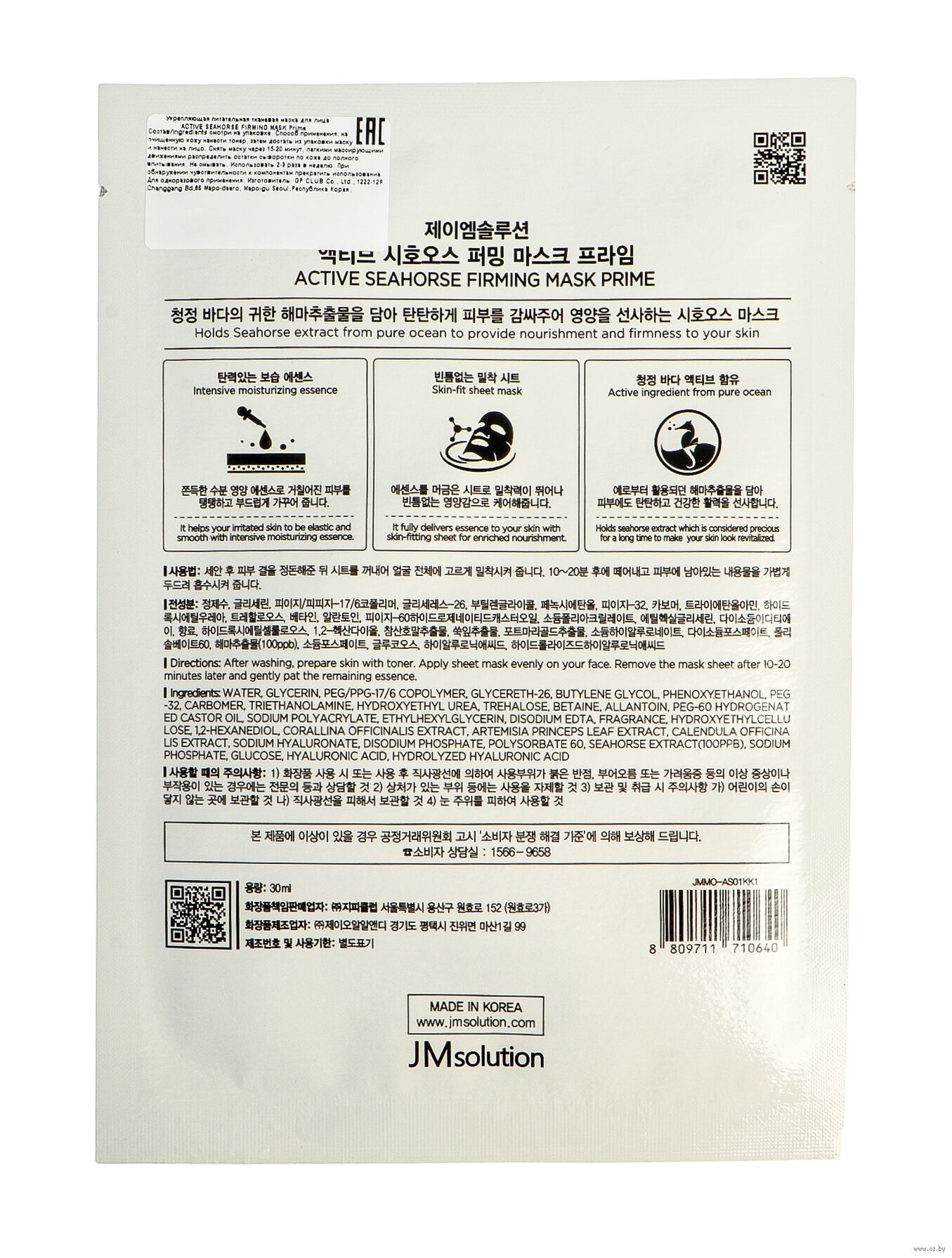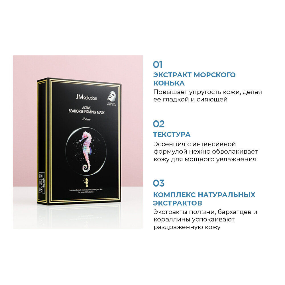 Укрепляющая тканевая маска для лица с экстрактом морского конька и тройной гиалуроновой кислотой оживляет тусклую и уставшую кожу.