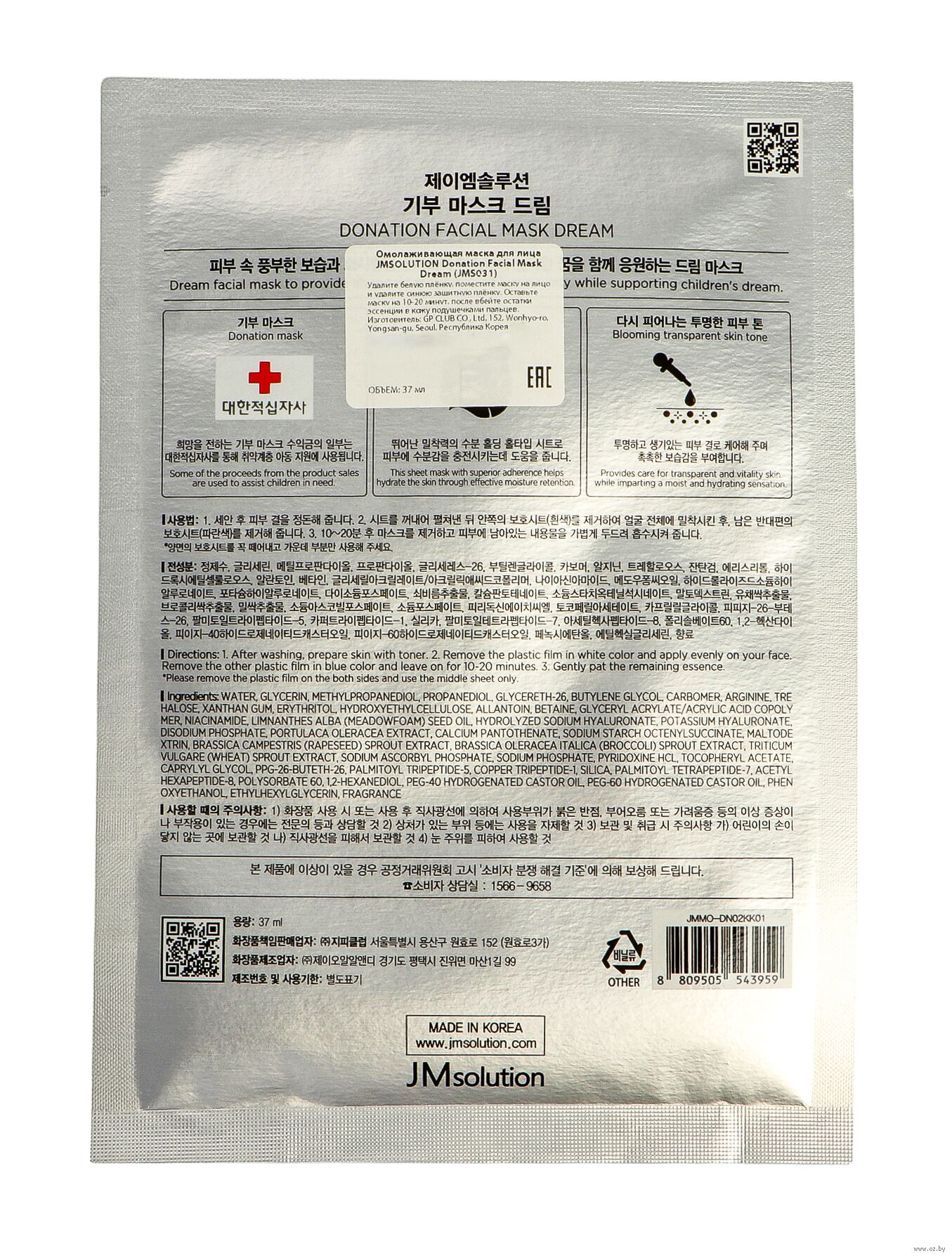 Тканевая маска для лица "Donation Facial Mask Dream. С пептидами" (37 мл)