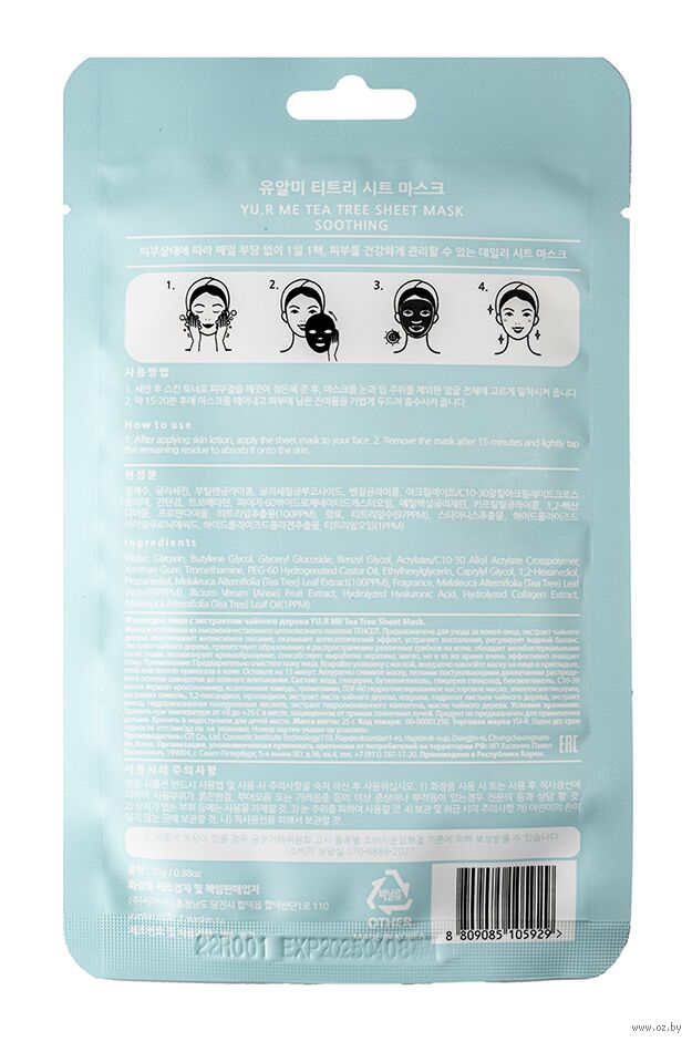 Предварительно очистите кожу лица. Вскройте упаковку. Маска находится на подложке. Снимите маску с подложки, аккуратно наклейте маску на лицо и пригладьте, чтоб она плотно прилегала к коже. Оставьте на 15 минут. Аккуратно снимите маску, легкими постукивающими движениями распределите остатки сыворотки до полного впитывания.Состав
