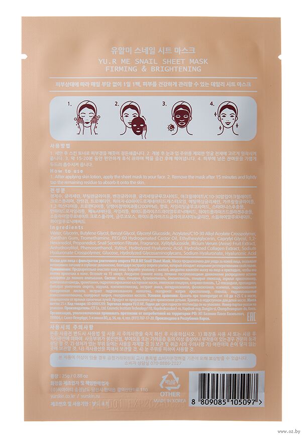 Предварительно очистите кожу лица. Вскройте упаковку. Маска находится на подложке. Снимите маску с подложки, аккуратно наклейте маску на лицо и пригладьте, чтоб она плотно прилегала к коже. Оставьте на 15 минут. Аккуратно снимите маску, легкими постукивающими движениями распределите остатки сыворотки до полного впитывания.Состав